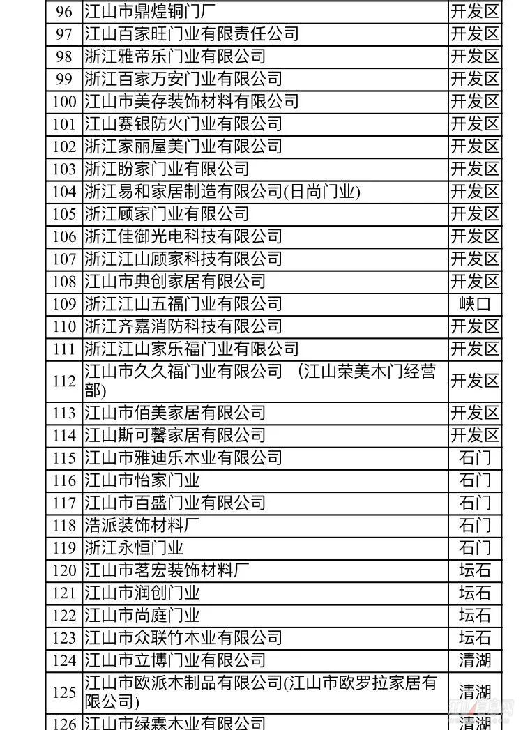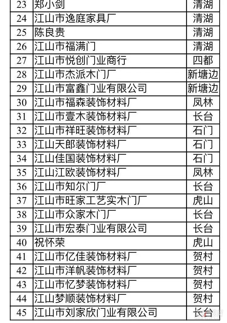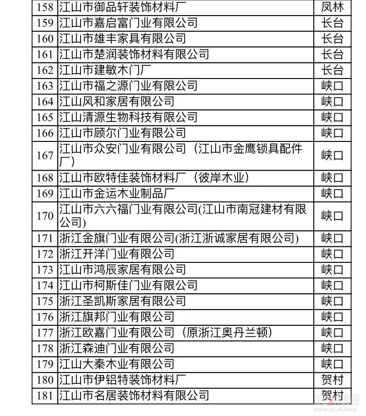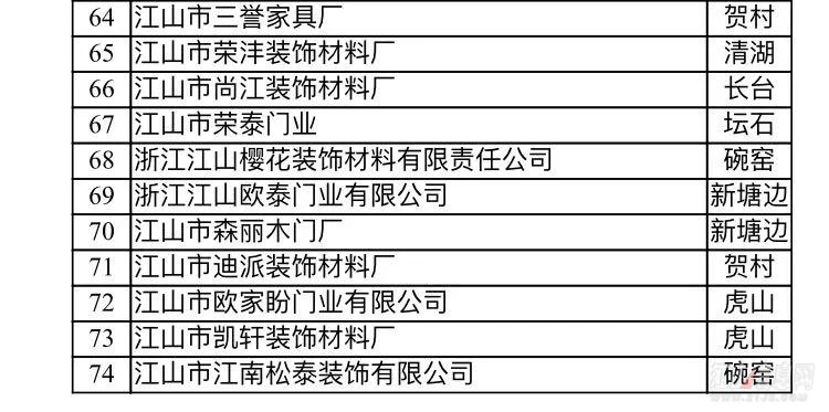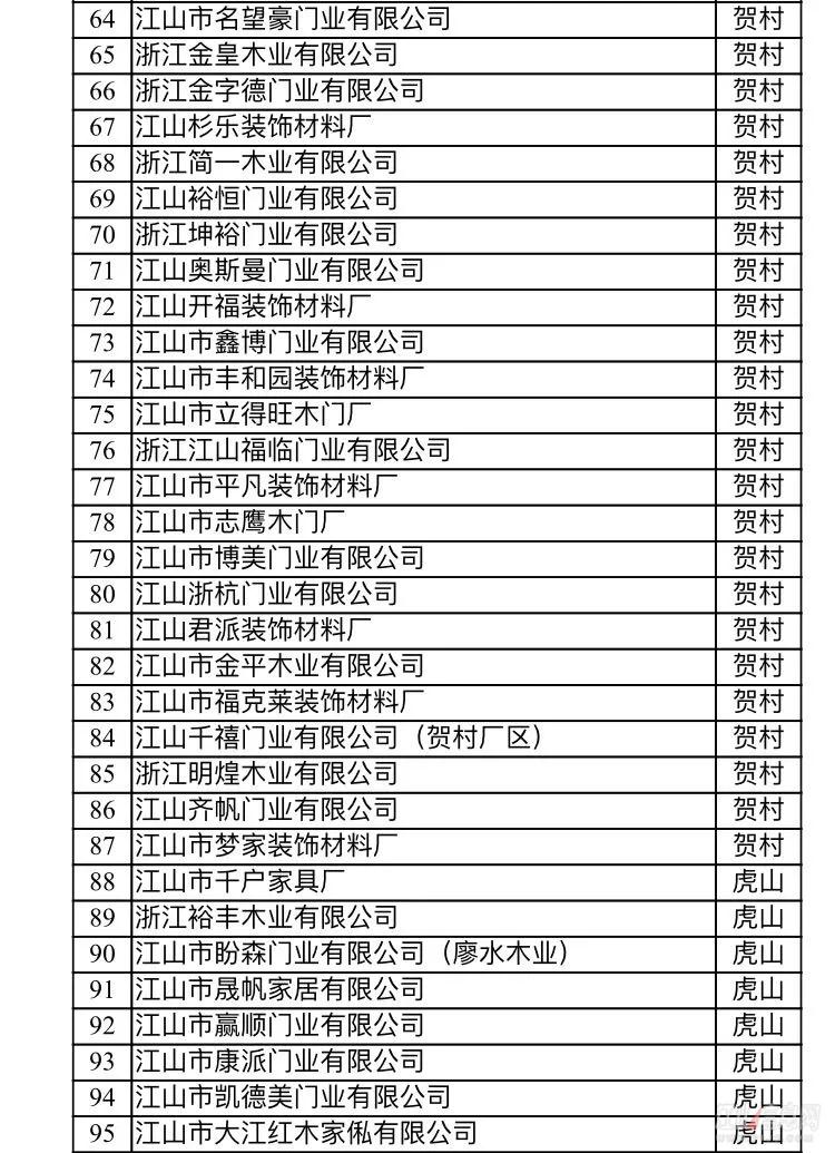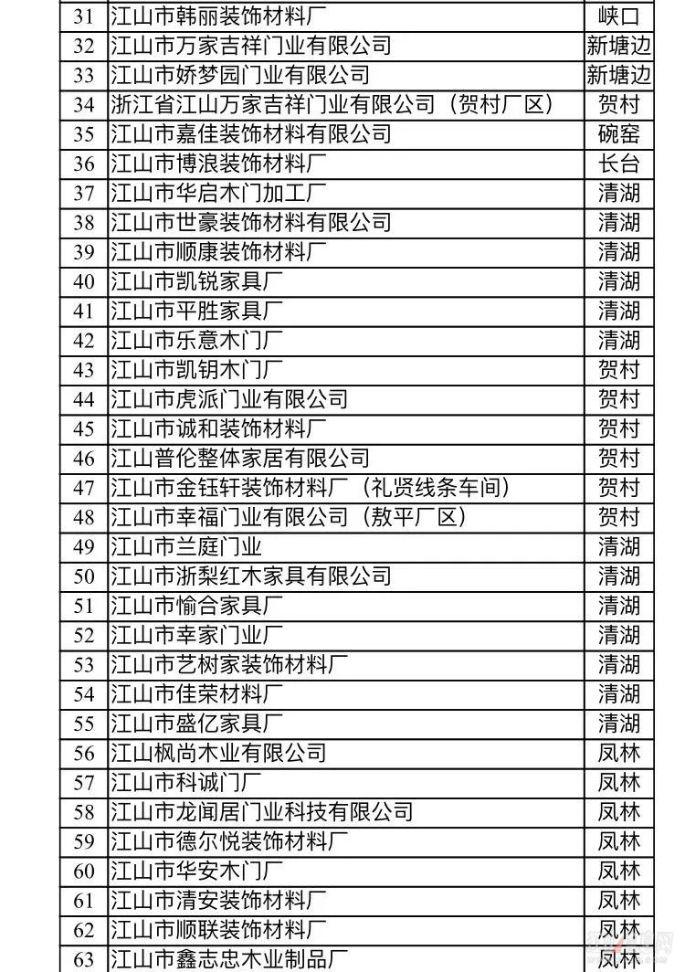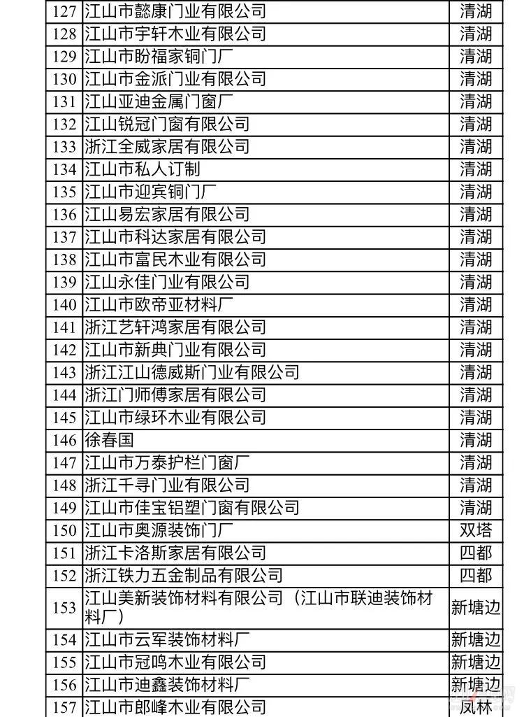 備注:浙江江山潤安門業有限公司積極響應市門業整治工作,已完成自身整改——搬遷入園,綜合驗收也已完成。