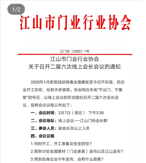 春節(jié)假期即將結(jié)束,但疫情情況仍不樂觀,企業(yè)主對(duì)市場、開工、員工、租金、稅收等問題具有較大疑惑,為此2月7日,秘書長采取線上交流,召開二屆六次會(huì)長會(huì)議,針對(duì)這些問題展開討論,此次會(huì)議還邀請行業(yè)龍頭歐派門業(yè)吳水根為大家支招獻(xiàn)策。
